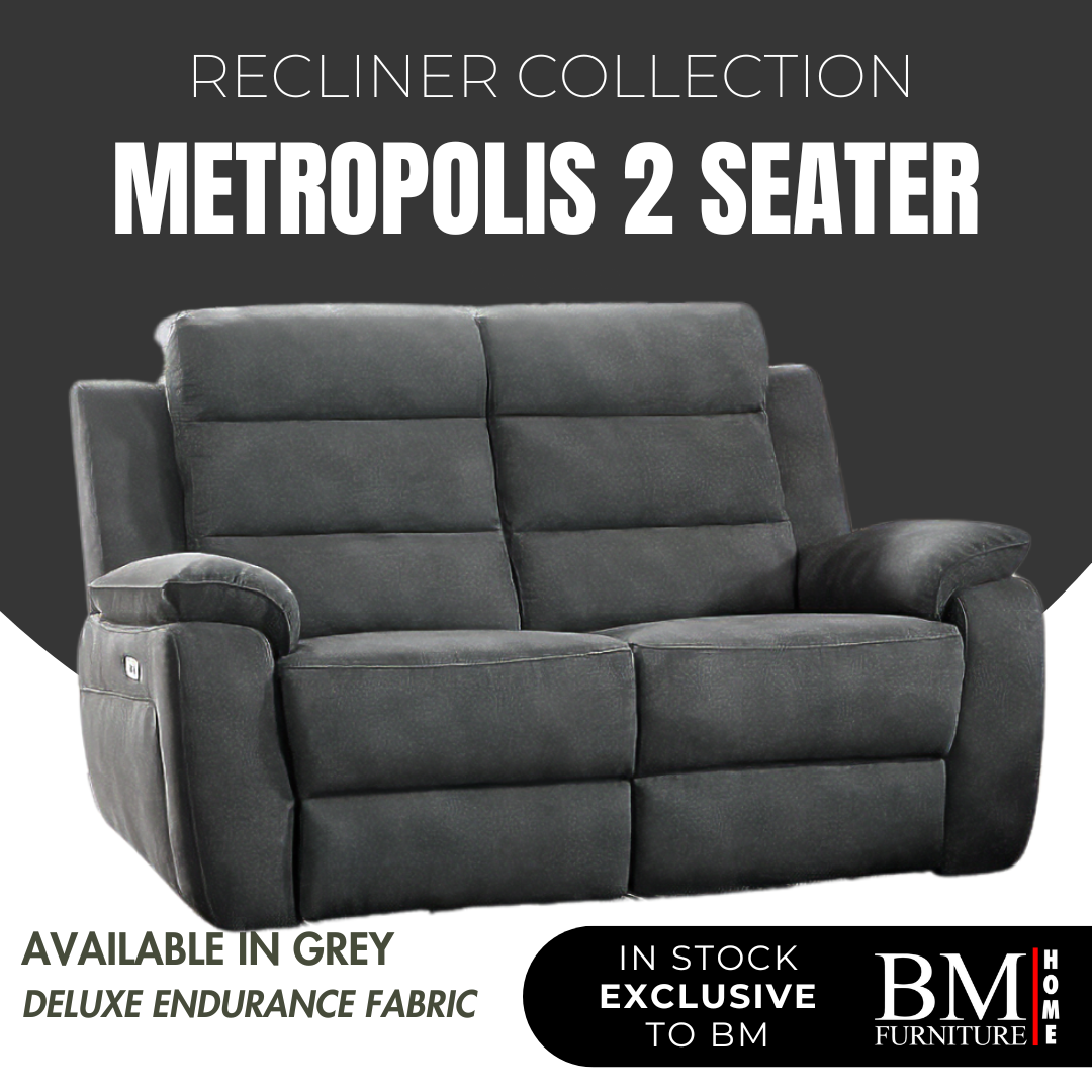 Metropolis 2-Seater Power Recliner Fabric Sofa with USB